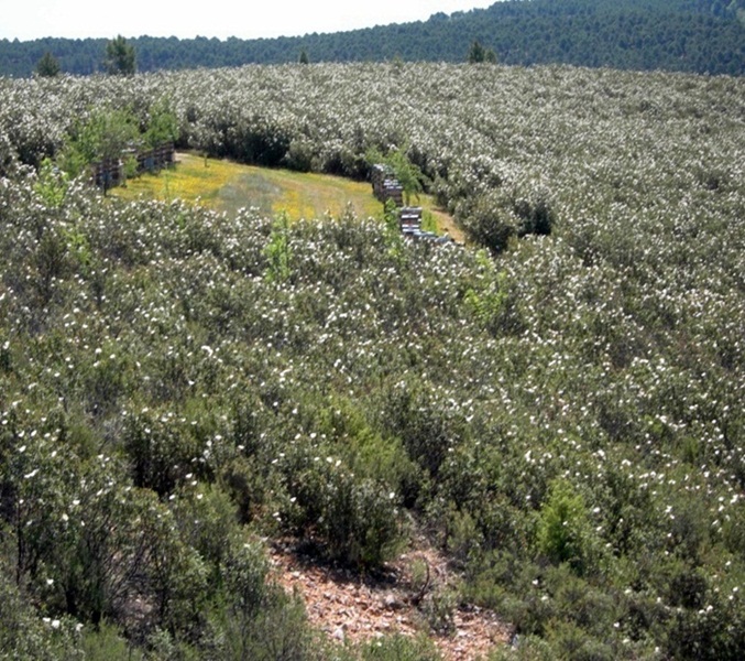 Nuestros colmenares se encuentran situados en las cuencas de los ríos Jarama y Lozoya, entre 700 y 1600 metros de altitud. Las colmenas pasan el invierno y parte de la primavera en las zonas más bajas, donde hace menos frío y las floraciones son más templadas como; el Romero, Almendro, Tomillo, Salvia y Jaras.